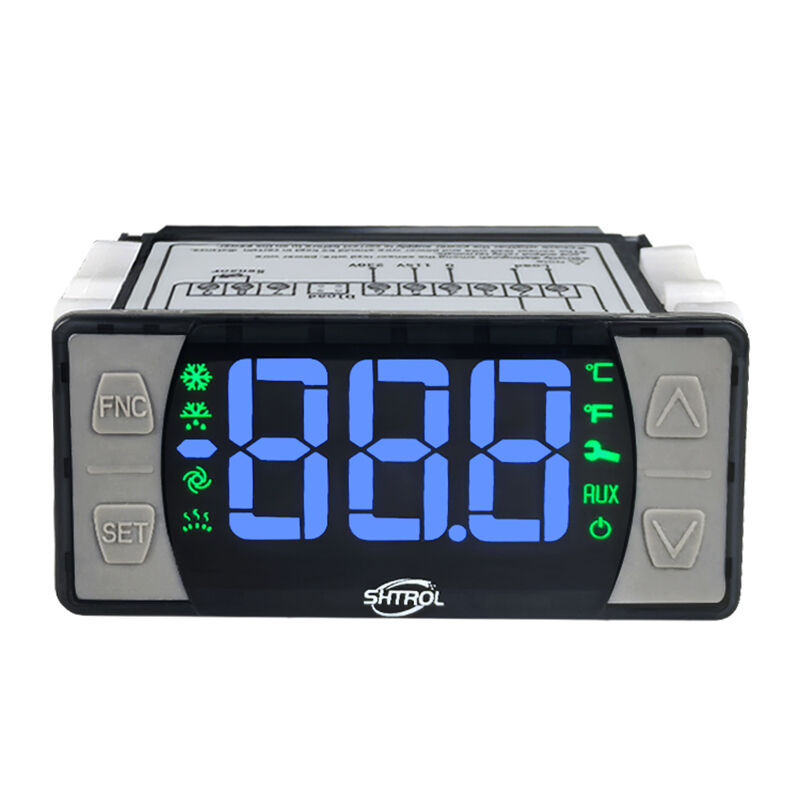 Ο SH-512E είναι ένας ψηφιακός ελεγκτής θερμοκρασίας υψηλής απόδοσης, ο οποίος έχει σχεδιαστεί ειδικά για εμπορικό ψυχόμενο εξοπλισμό και βιομηχανικές εγκαταστάσεις. Με ενσωματωμένο αισθητήρα θερμοκρασίας NTC υψηλής ακρίβειας και έξυπνους αλγόριθμους ελέγχου, παρέχει ακριβή και σταθερή ρύθμιση της θερμοκρασίας με ελάχιστη διακύμανση και γρήγορη ανταπόκριση, βελτιώνοντας αποτελεσματικά την απόδοση του εξοπλισμού και μειώνοντας την κατανάλωση ενέργειας. Με ευρύ εύρος θερμοκρασίας από -50°C έως +150°C, υποστηρίζει εναλλαγή μεταξύ λειτουργίας ψύξης και θέρμανσης, προκειμένου να καλύψει διάφορες εφαρμογές. Οι 21 ρυθμιζόμενες παράμετροι χρήστη (F01–F21) προσφέρουν ευέλικτες επιλογές διαμόρφωσης, συμπεριλαμβανομένης της υστέρησης, του διαστήματος απόψυξης και της καθυστέρησης προστασίας του συμπιεστή, επιτρέποντας στους επαγγελματίες χρήστες να επιτυγχάνουν ακριβή έλεγχο.